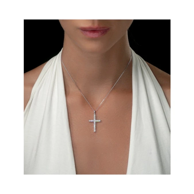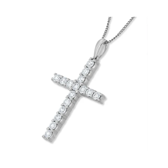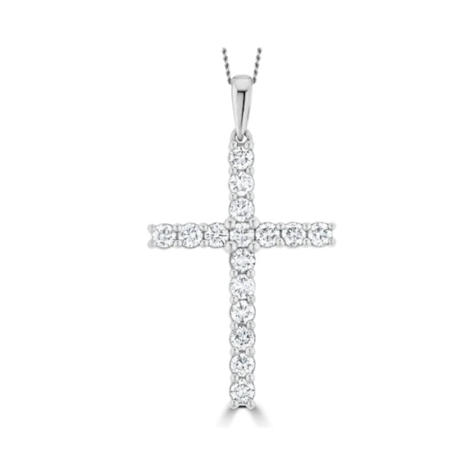 This luxurious diamond cross necklace is a truly breathtaking piece. Handcrafted with a whole carat of sustainable lab grown diamonds it catches the light and sparkles beautifully on your neckline. Set in lustrous white gold, this makes a perfect gift for any special occasion.