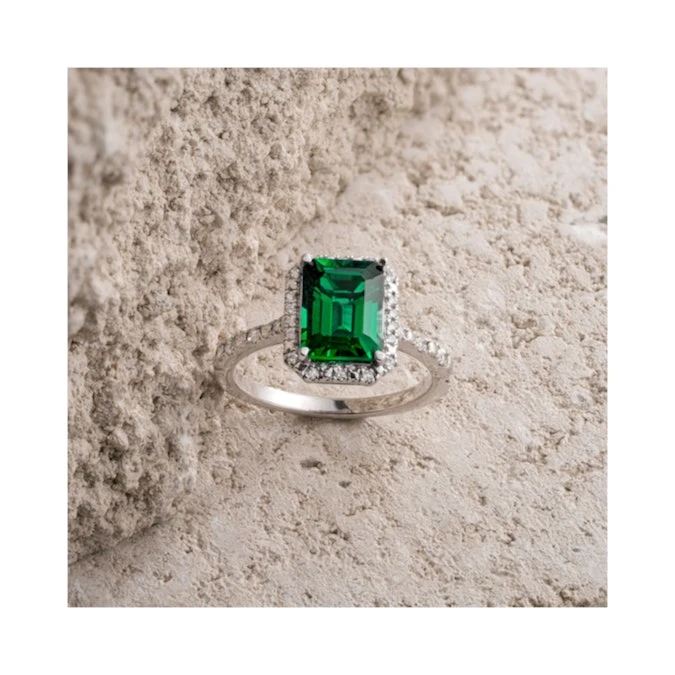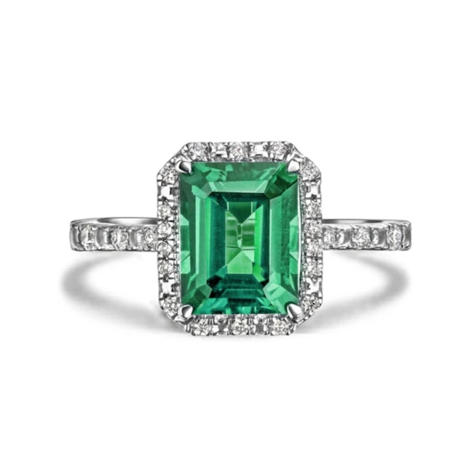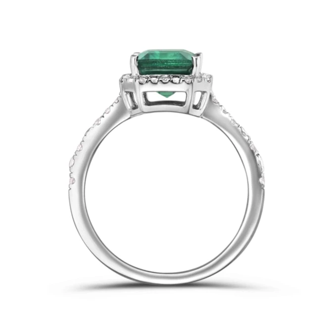 Uncover the Astra Lab Emerald and Diamond Halo Shoulder Set Octagon Cut Ring, with a 1.50ct emerald set in in 0.25CT of sparkling H/SI lab-grown diamonds. The deep-green emerald glimmers particularly beautifully when offset by the halo of diamonds, further emphasising the size of the jewel. The consciously crafted diamonds are complemented by the finest sterling silver band, and the half-eternity style means it sits comfortably on the wearer’s finger. Choose this piece to mark a milestone, or for an opulent piece of everyday wear. Take advantage of free worldwide delivery, beautiful packaging and a 5-year guarantee.