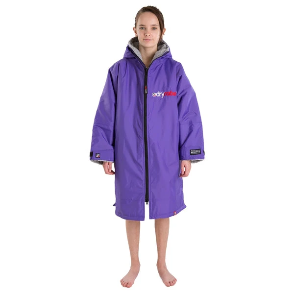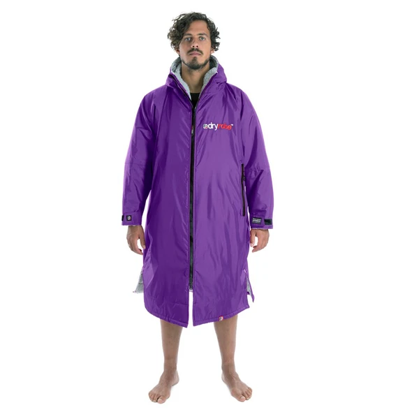 If you take the original dryrobe concept, cross it with the old school Swim Parka combine that with the versatility of a zip front Poncho and then add all the functions & super warmth of the dryrobe Advance, you get the Dryrobe LS. (long sleeve) Grey Lining, Purple Outer.