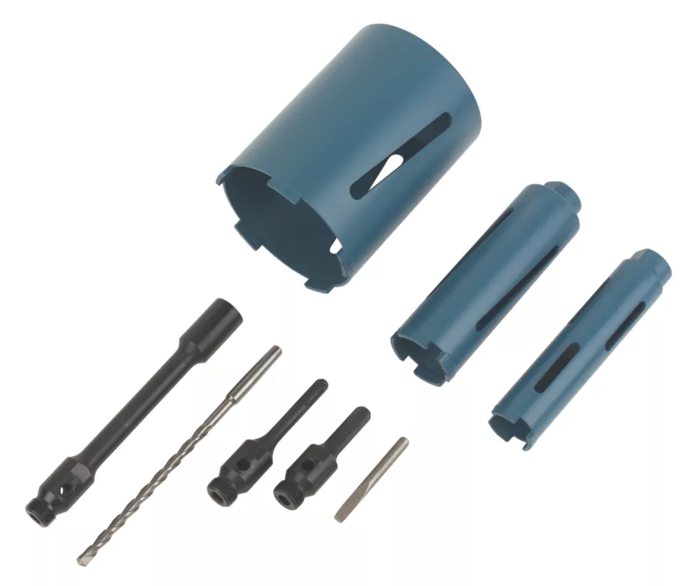 A selection of 3 diamond core drills for fast, clean cutting and drilling in masonry, bricks and blocks. Suitable for wet and dry cutting. Supplied with accessories and carry case.