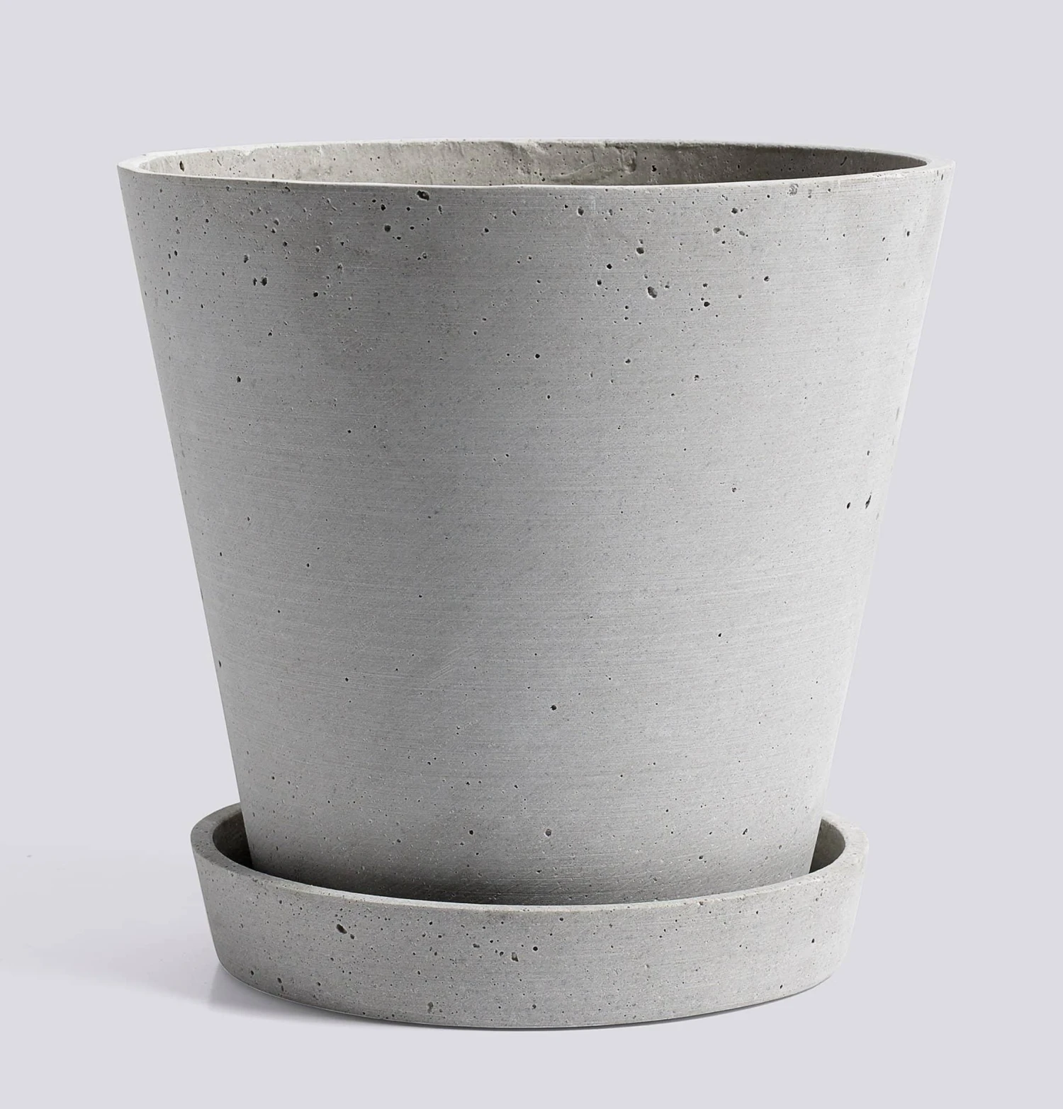 A minimalist HAY plant pot with saucer made from polystone – a cross between stone and plastic which gives a rough, organic finish similar to concrete.