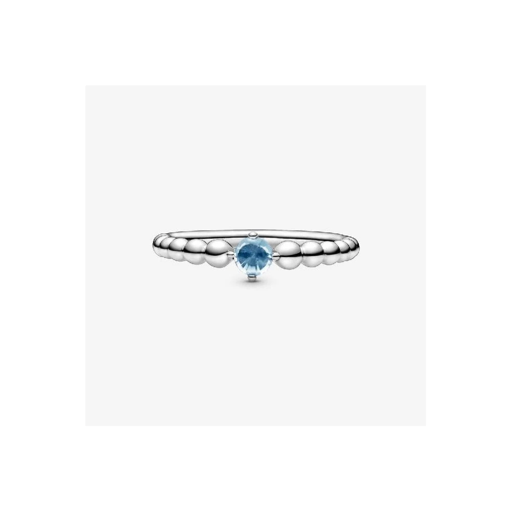 - March Birthstone Beaded Ring, Size 54.