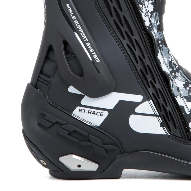 TCX RT-Race motorcycle boots are equipped with the anti-twist Double Flex Control system, a polyurethane joint in the ankle area able to control movement down to the millimeter, offering ideal joint support and flexibility, to prevent dangerous twisting and the risk of injury.